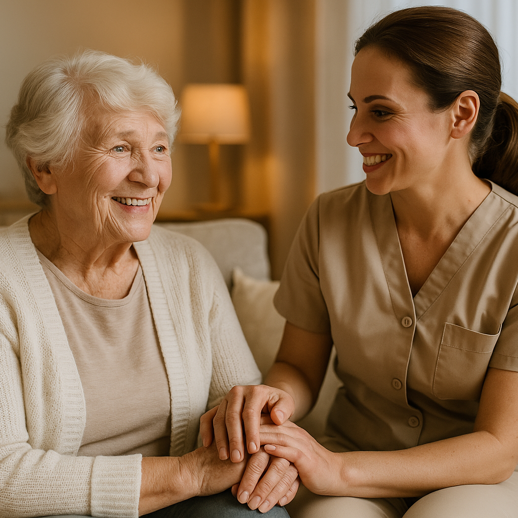 Cuidado personalizado, compañía, ayuda en tareas diarias y apoyo emocional para personas mayores o dependientes en su propio hogar.